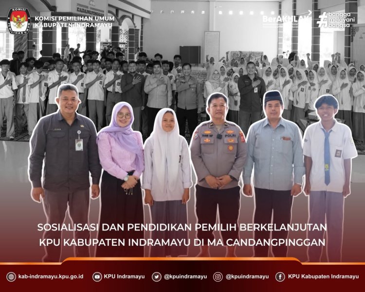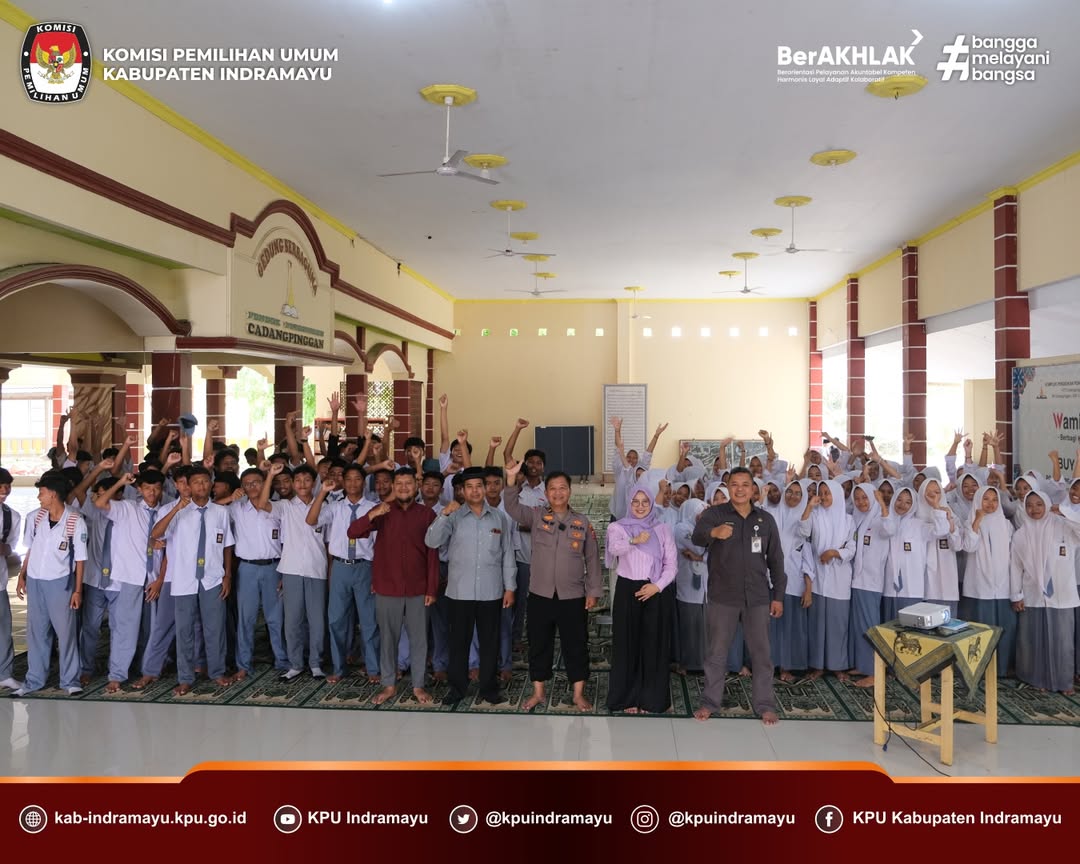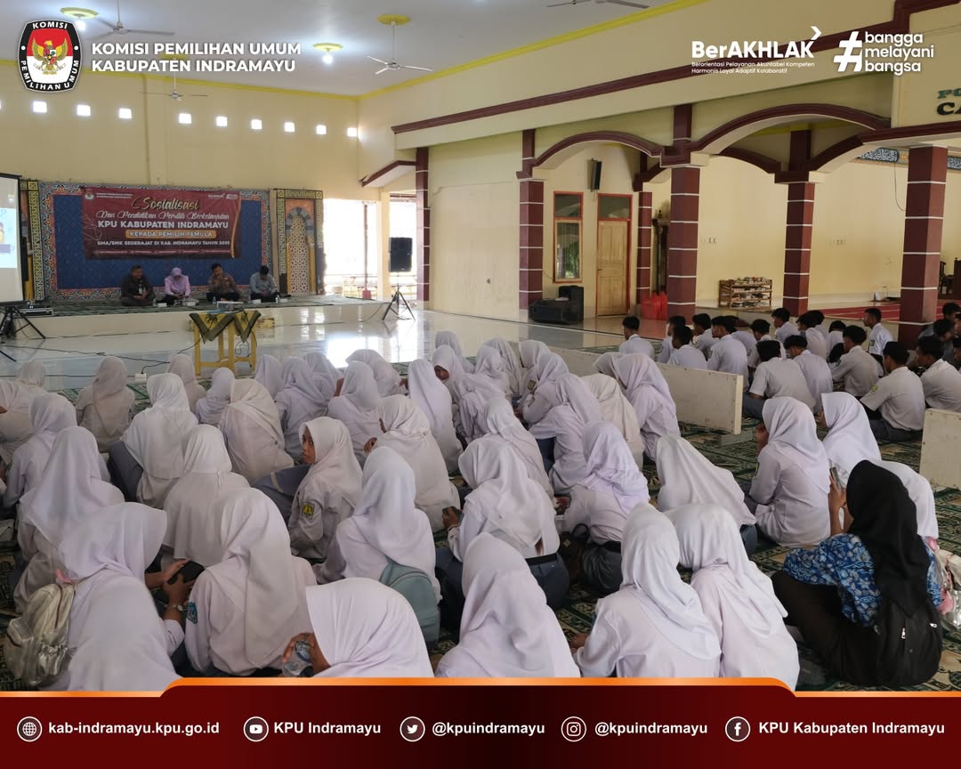 INDRAMAYU - KPU Kabupaten Indramayu melaksanakan kegiatan Sosialisasi dan Pendidikan Pemilih Berkelanjutan di MA Candangpinggan yang diikuti oleh 155 siswa dengan antusias, Selasa (30/9).
