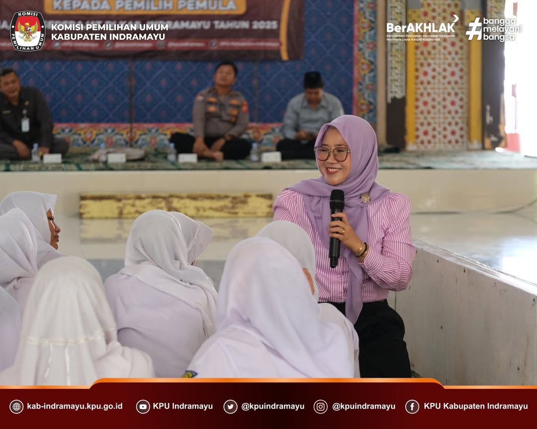 Sosialisasi dipimpin langsung oleh Ketua Divisi Hukum dan Pengawasan KPU Indramayu, Ibu Dewi Nurmalasari. Dalam penyampaiannya, Dewi menekankan pentingnya generasi muda, khususnya pemilih pemula, untuk memahami hak dan kewajibannya dalam pemilu agar dapat menjadi pemilih yang cerdas, kritis, dan bertanggung jawab.