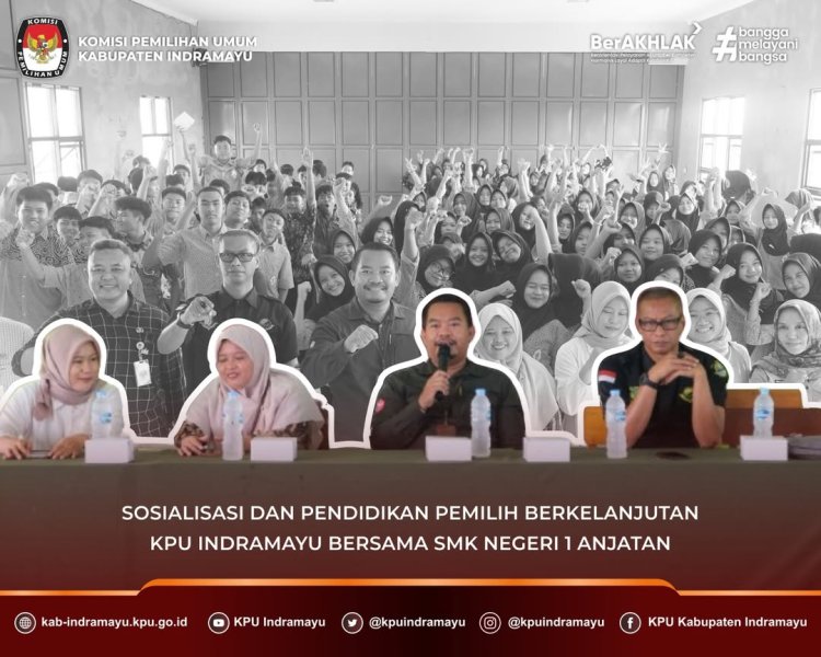 INDRAMAYU - Komisi Pemilihan Umum Kabupaten Indramayu melaksanakan kegiatan Sosialisasi Pendidikan Pemilih berkelanjutan di SMK Negeri 1 Anjatan, Selasa (16/9). Sosialisasi ini dihadiri oleh kurang lebih 155 Siswa di SMK Negeri 1 Anjatan.