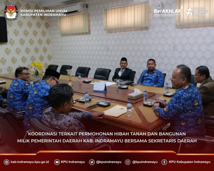INDRAMAYU - KPU Kabupaten Indramayu melakukan koordinasi terkait Permohonan Hibah Tanah dan Bangunan milik Pemerintah Daerah Kab. Indramayu yang dilaksanakan di Ruang Rapat Sekretaris Daerah Kab. Indramayu, Rabu, (1/10) .