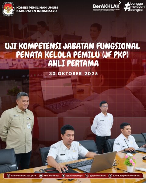 INDRAMAYU - KPU Kabupaten Indramayu mengikuti Uji Kompetensi Jabatan Fungsional Penata Kelola Pemilu (JF PKP) Ahli Pertama, Kamis (30/10). Kegiatan yang dilaksanakan di Aula KPU Kabupaten Indramayu ini diikuti oleh Prabowo Rifqi Nugroho dan Faiz Firzatullah dengan dilaksanakan secara daring serentak se-Indonesia.