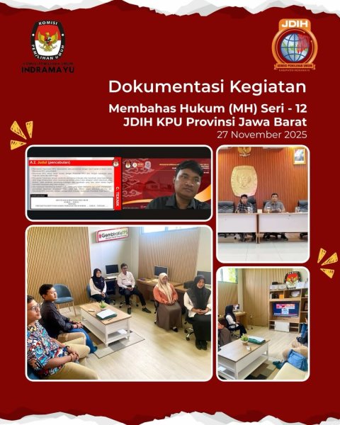 INDRAMAYU - KPU Indramayu kembali menghadiri program JDIH KPU Provinsi Jawa Barat kembali menyelenggarakan kegiatan rutin Membahas Hukum (MH) pada Kamis (27/11)