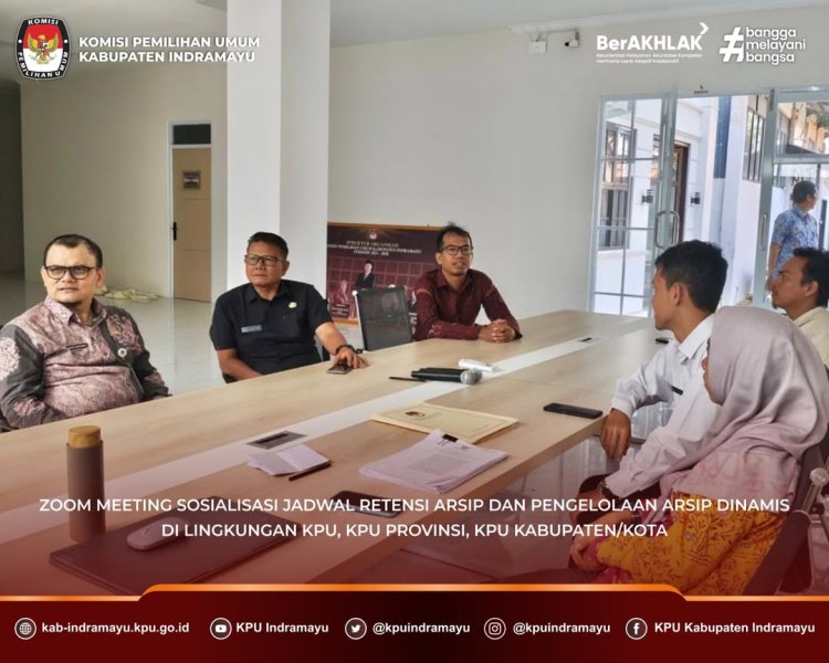 INDRAMAYU - KPU Kabupaten Indramayu mengikuti Zoom Meeting Sosialisasi Jadwal Retensi Arsip dan Pengelolaan Arsip Dinamis yang diselenggarakan bagi jajaran KPU, KPU Provinsi, serta KPU Kabupaten/Kota, Jumat (19/11). Kegiatan ini merupakan bagian dari upaya peningkatan pemahaman, keseragaman, dan kepatuhan dalam pelaksanaan pengelolaan arsip di lingkungan Komisi Pemilihan Umum.