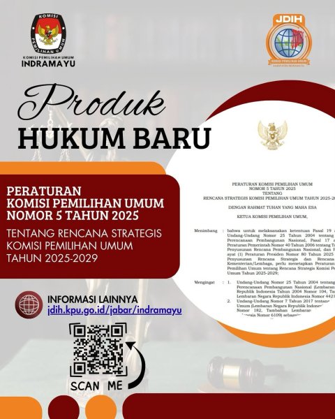 KPU RI telah menetapkan Peraturan Komisi Pemilihan Umum Nomor 5 Tahun 2025 tentang Rencana Strategis Komisi Pemilihan Umum Tahun 2025–2029.