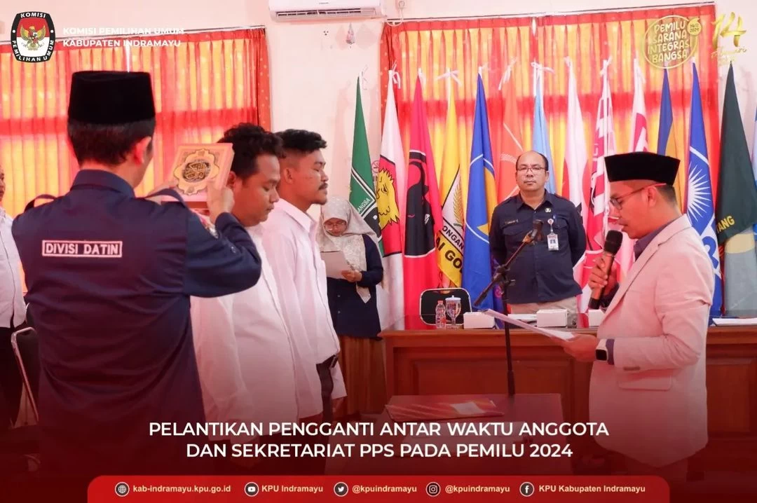 Komisi Pemilihan Pemilihan Umum Kabupaten Indramayu telah melaksanakan Pelantikan Penggan Antar Waktu Anggota PPS dan Sekretariat PPS di Aula KPU Kabupaten Indramayu, pada Selasa 20 Juni 2023.