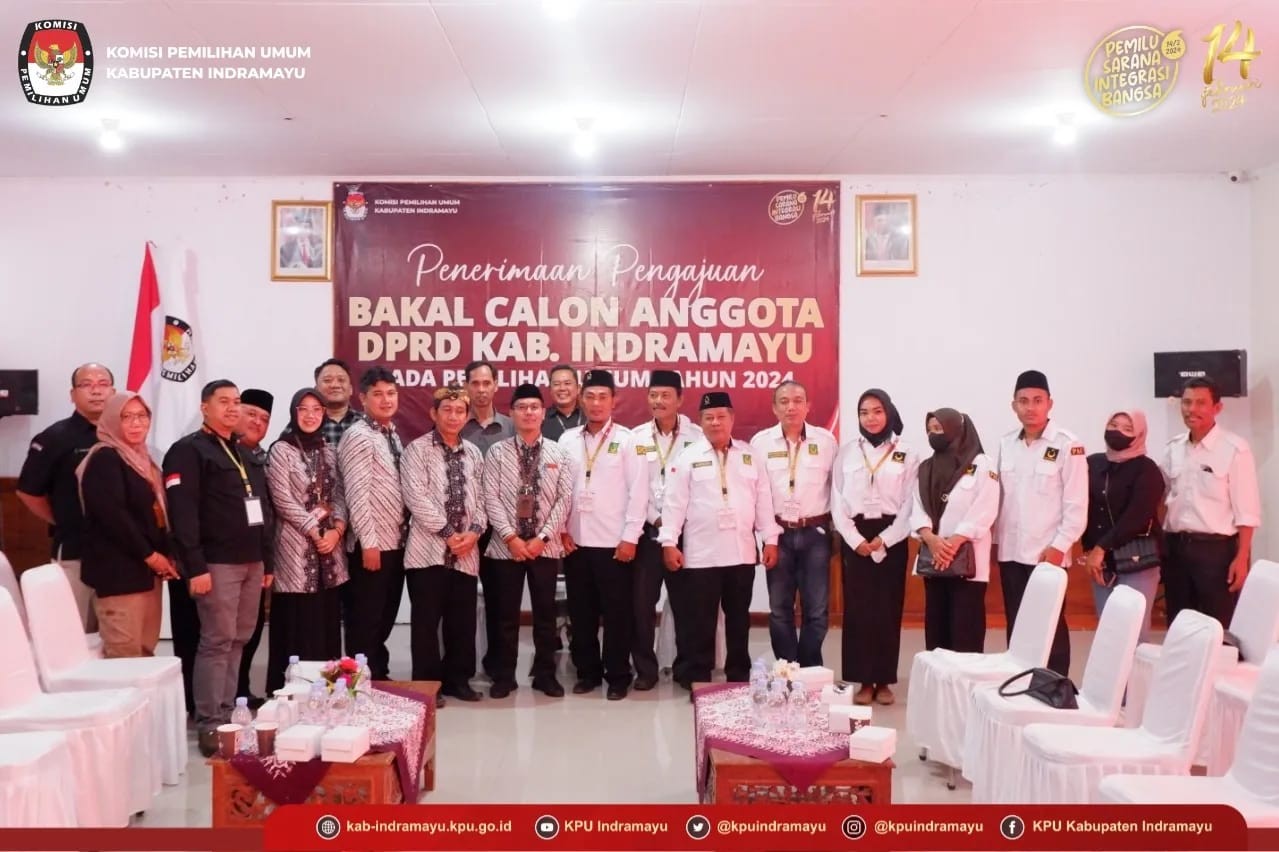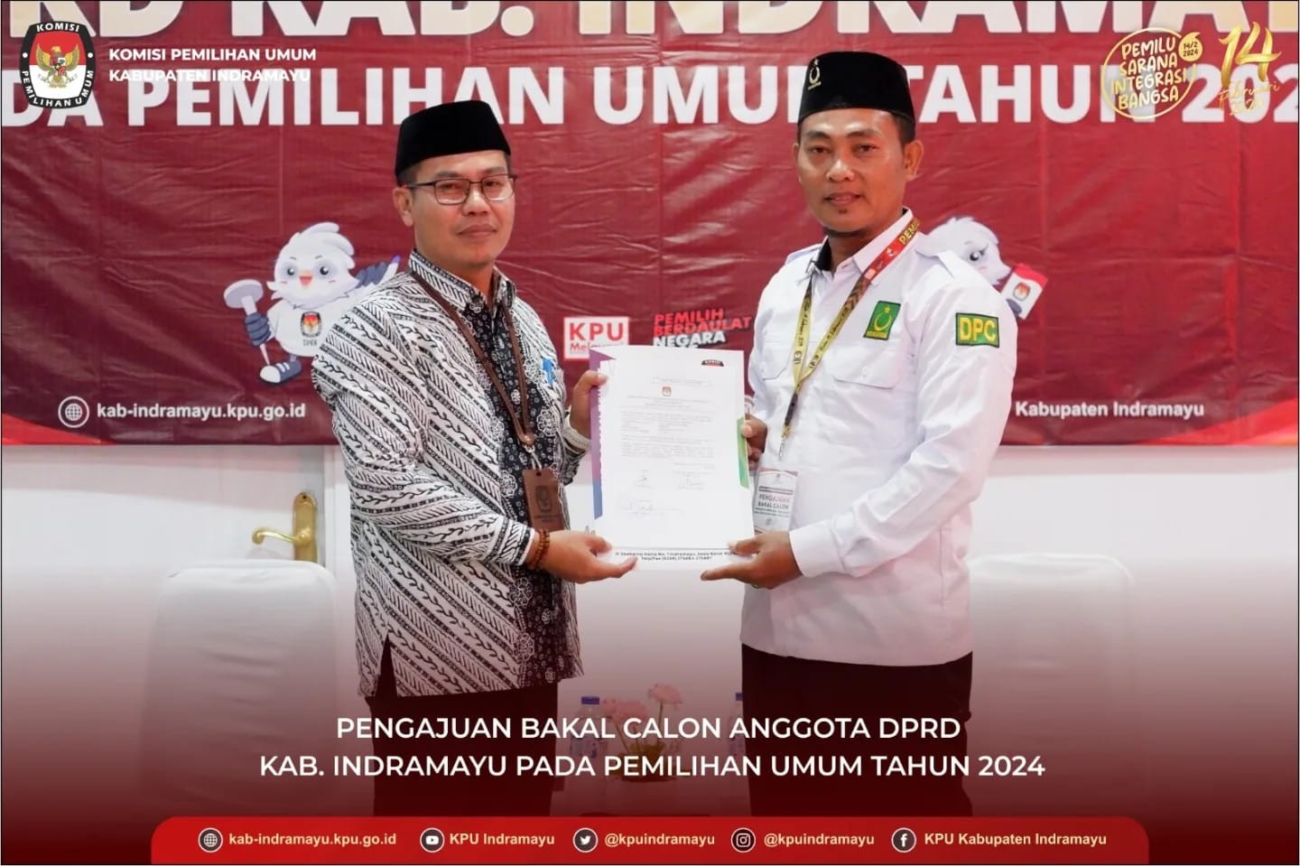 Minggu, 14 Mei 2023 Komisi Pemilihan Umum Kabupaten Indramayu menerima Pengajuan Bakal Calon Anggota DPRD Kabupaten Indramayu dari Partai Bulan Bintang Kabupaten Indramayu. Pengajuan tersebut diserahkan langsung oleh Ketua DPC Partai Bulan Bintang Kabupaten Indramayu, Rawenda yang diterima oleh Ketua KPU Kabupaten Indramayu Ahmad Toni Fatoni untuk dilakukan pengecekan kelengkapan persyaratan. Setelah dilakukan pengecekan persyaratan, Pengajuan Bakal Calon Anggota DPRD Kabupaten Indramayu dari Partai Bulan Bintang dinyatakan Lengkap dan Diterima untuk selanjutnya akan dilakukan tahap Verifikasi Administrasi yang dilaksanakan dari tanggal 15 Mei 2023 sampai 23 Juni 2023 (Peraturan KPU Nomor 10 Tahun 2023)