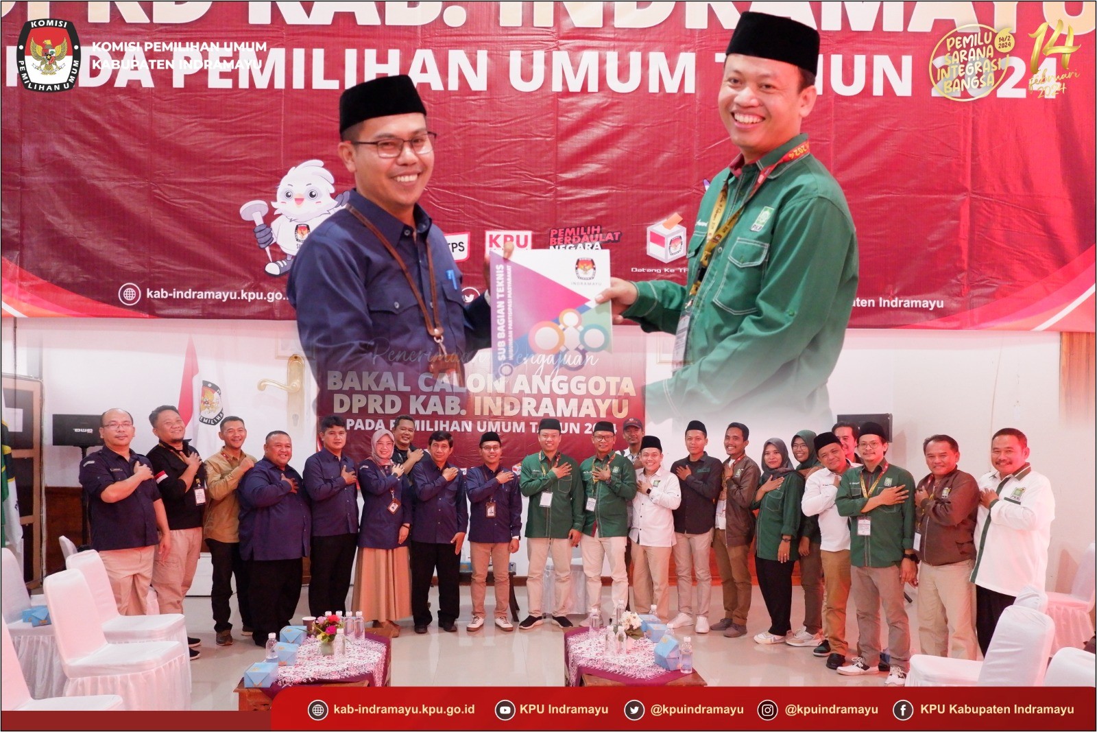 Sabtu, 13 Mei 2023 Komisi Pemilihan Umum Kabupaten Indramayu menerima Pengajuan Bakal Calon Anggota DPRD Kabupaten Indramayu dari Partai Kebangkitan Bangsa Kabupaten Indramayu. Pengajuan tersebut diserahkan langsung oleh Ketua DPC Partai Kebangkitan Bangsa Kabupaten Indramayu, Amroni yang diterima oleh Ketua KPU Kabupaten Indramayu Ahmad Toni Fatoni untuk dilakukan pengecekan kelengkapan persyaratan. Setelah dilakukan pengecekan persyaratan, Pengajuan Bakal Calon Anggota DPRD Kabupaten Indramayu dari Partai Kebangkitan Bangsa dinyatakan Lengkap dan Diterima untuk selanjutnya akan dilakukan tahap Verifikasi Administrasi yang dilaksanakan dari tanggal 15 Mei 2023 sampai 23 Juni 2023 (Peraturan KPU Nomor 10 Tahun 2023)