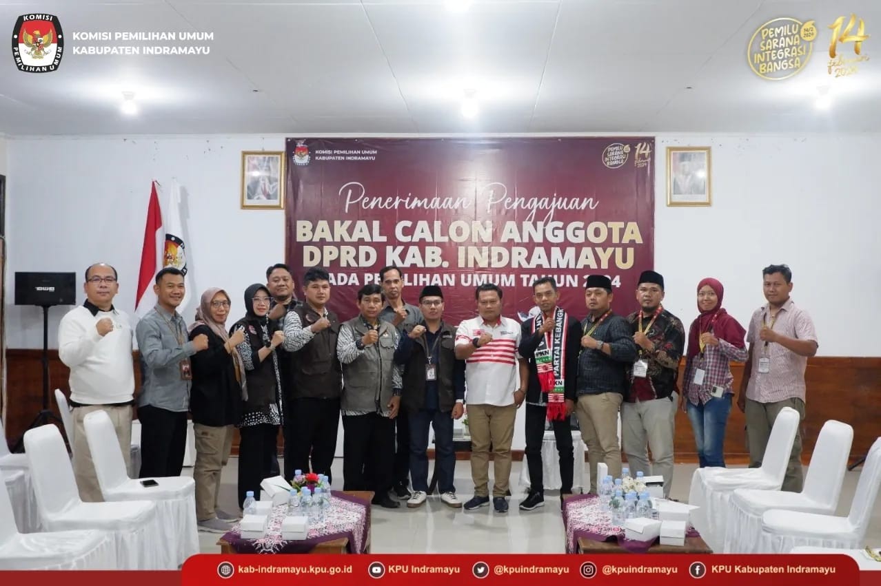 Minggu, 14 Mei 2023 Komisi Pemilihan Umum Kabupaten Indramayu menerima Pengajuan Bakal Calon Anggota DPRD Kabupaten Indramayu dari Partai Kebangkitan Nusantara Kabupaten Indramayu. Pengajuan tersebut diserahkan langsung oleh Sekretaris Pimpinan Cabang Partai Kebangkitan Nusantara Kabupaten Indramayu, Syamsudin yang diterima oleh Ketua KPU Kabupaten Indramayu Ahmad Toni Fatoni untuk dilakukan pengecekan kelengkapan persyaratan. Setelah dilakukan pengecekan persyaratan, Pengajuan Bakal Calon Anggota DPRD Kabupaten Indramayu dari Partai Kebangkitan Nusantara dinyatakan Lengkap dan Diterima untuk selanjutnya akan dilakukan tahap Verifikasi Administrasi yang dilaksanakan dari tanggal 15 Mei 2023 sampai 23 Juni 2023 (Peraturan KPU Nomor 10 Tahun 2023)