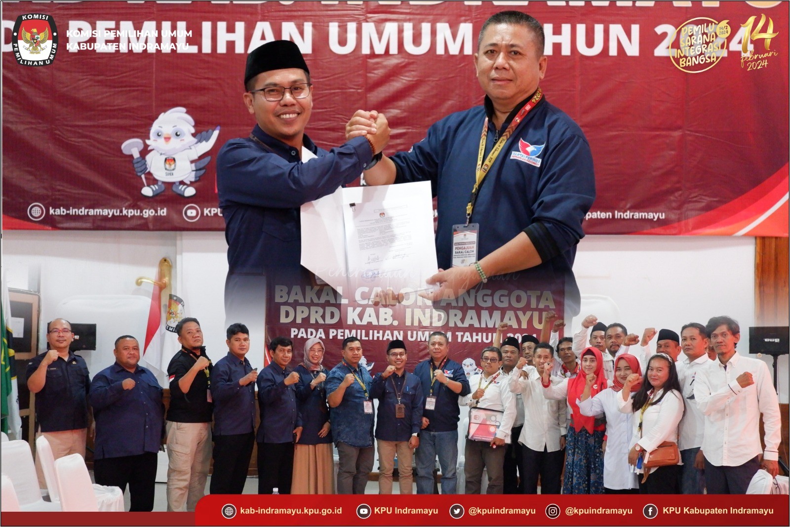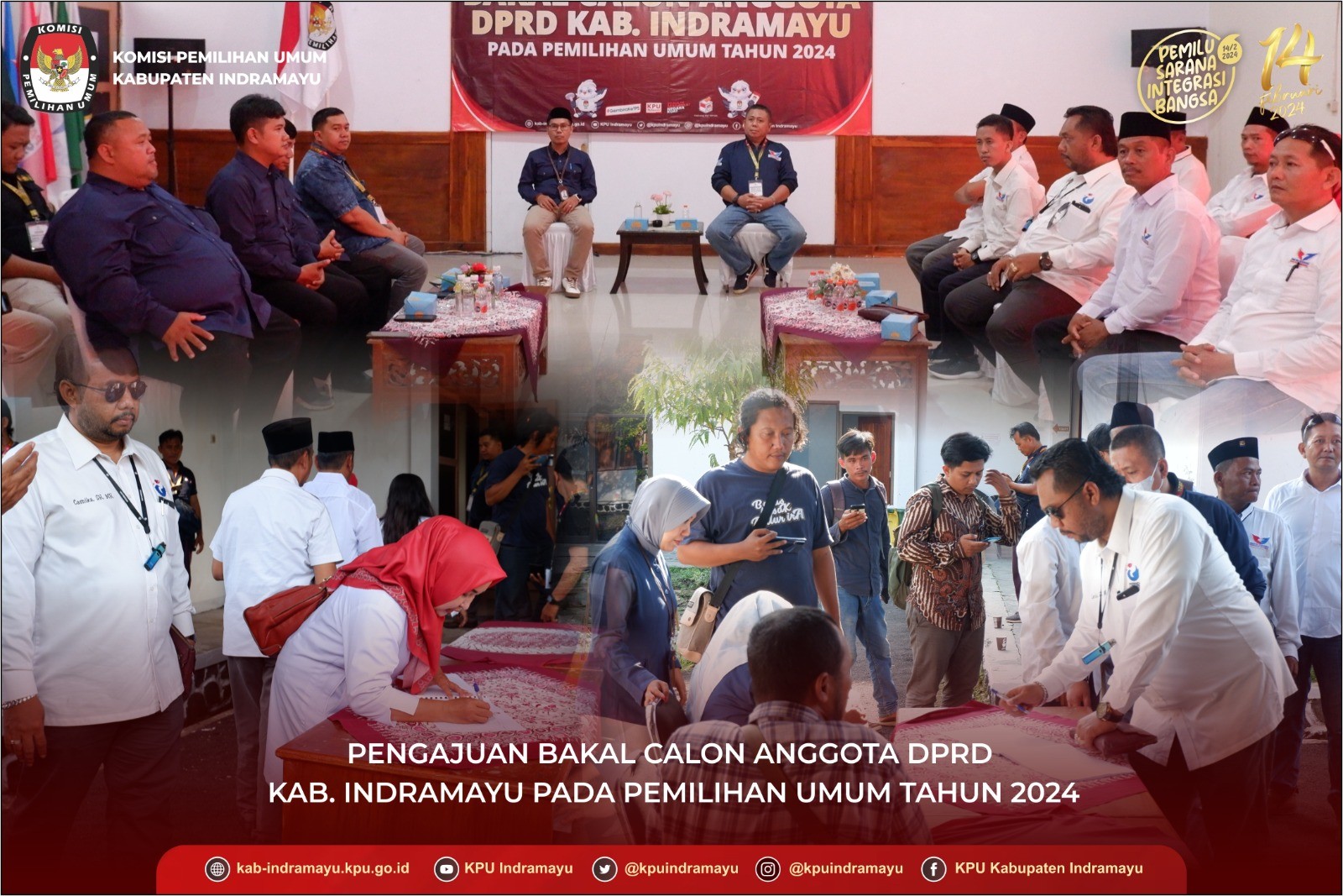 Sabtu, 13 Mei 2023 Komisi Pemilihan Umum Kabupaten Indramayu menerima Pengajuan Bakal Calon Anggota DPRD Kabupaten Indramayu dari Partai Persatuan Indonesia Kabupaten Indramayu. Pengajuan tersebut diserahkan langsung oleh Ketua DPD Partai Persatuan Indonesia Kabupaten Indramayu, Rudin yang diterima oleh Ketua KPU Kabupaten Indramayu Ahmad Toni Fatoni untuk dilakukan pengecekan kelengkapan persyaratan. Setelah dilakukan pengecekan persyaratan, Pengajuan Bakal Calon Anggota DPRD Kabupaten Indramayu dari Partai Persatuan Indonesia dinyatakan Lengkap dan Diterima untuk selanjutnya akan dilakukan tahap Verifikasi Administrasi yang dilaksanakan dari tanggal 15 Mei 2023 sampai 23 Juni 2023 (Peraturan KPU Nomor 10 Tahun 2023)