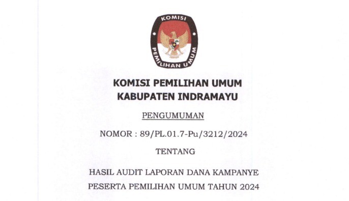 Berikut merupakan pengumuman Hasil Audit Laporan Dana Kampanye Peserta Pemilihan Umum Tahun 2024 di Kabupaten Indramayu