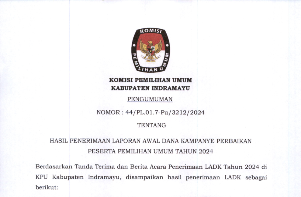 Pengumuman Laporan Awal Dana Kampanye Perbaikan Partai Politik Kabupaten Indramayu