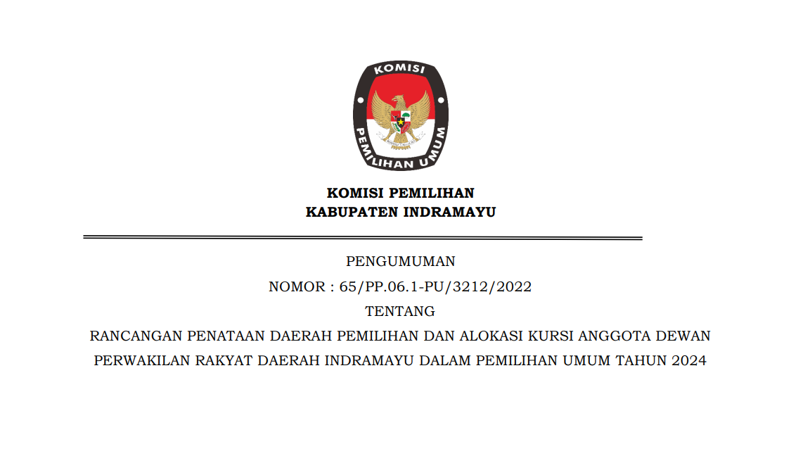 PENGUMUMAN : Rancangan Penetapan DAPIL dan Alokasi Kursi Anggota DPRD Indramayu Pemilu 2024