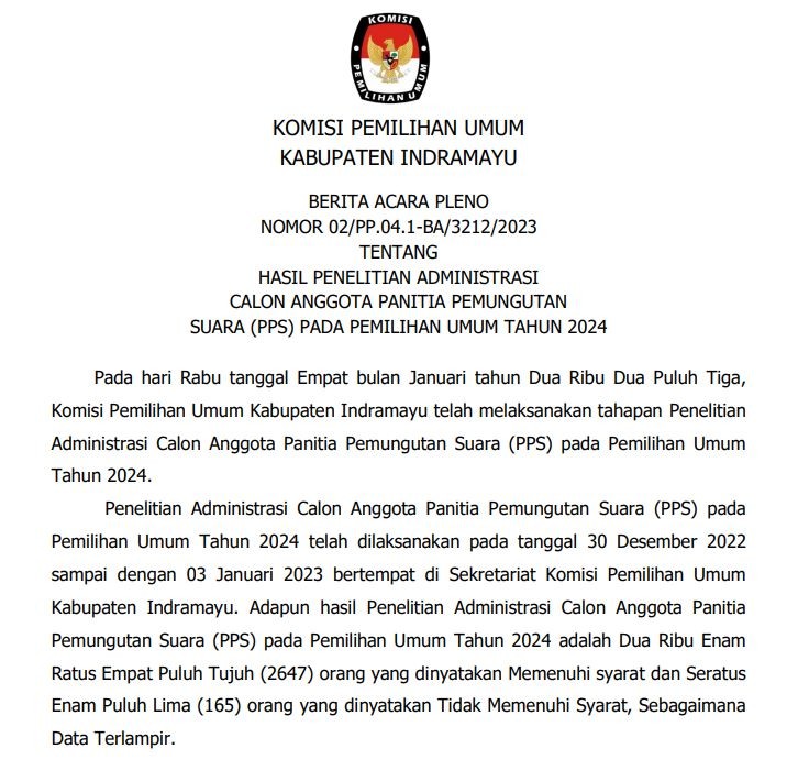 PENGUMUMAN verifikasi administrasi Pembentukan Calon Anggota PPS untuk Pemilihan Umum Tahun 2024