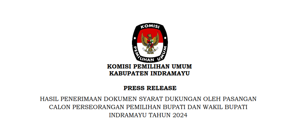 PRESS RELEASE HASIL PENERIMAAN DOKUMEN SYARAT DUKUNGAN CALON PERSEORANGAN PEMILIHAN BUPATI DAN WAKIL BUPATI INDRAMAYU TAHUN 2024