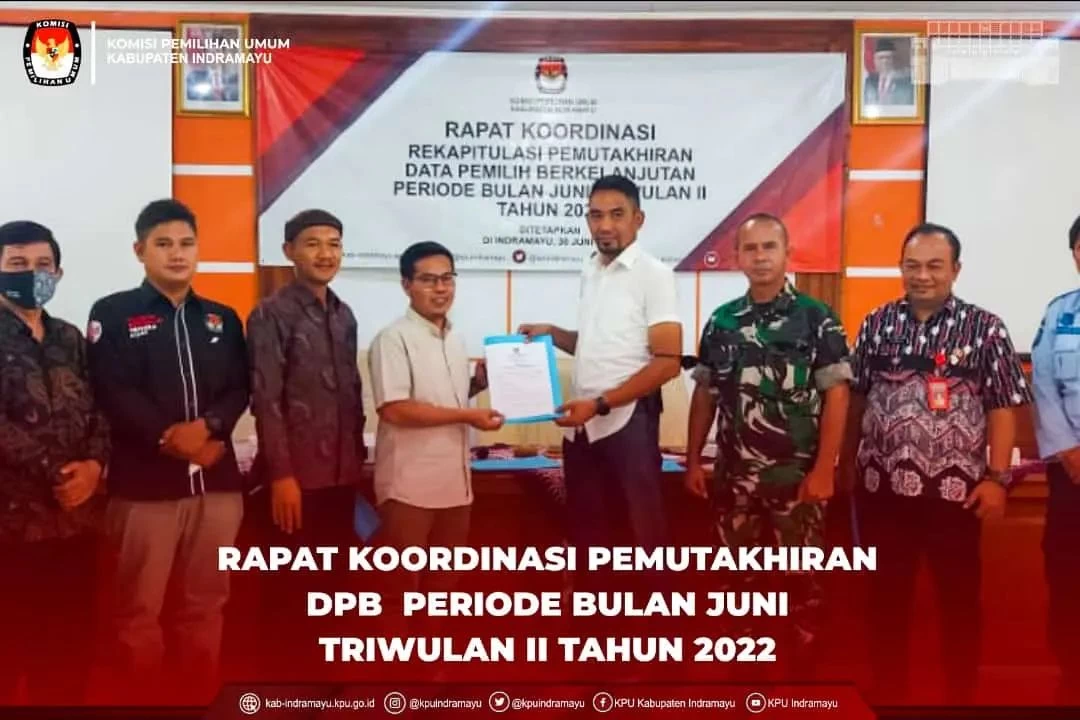 Komisi Pemilihan Umum Kabupaten Indramayu mengadakan Rapat Koordinasi Rekapitulasi Pemutakhiran Data Pemilih Berkelanjutan Periode Bulan Juni Triwulan II Tahun 2022.