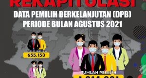 KPU Kab. Indramayu telah Melaksanakan Rapat Pleno Rekapitulasi Pemutakhiran Data Pemilih Berkelanjutan (DPB) Periode Bulan Agustus tahun 2021 di Aula KPU Kab. Indramayu dengan Jumlah Total pemilih 1.314.881 dengan pemilih laki-laki sejumlah 655.153 dan pemilih perempuan 659.728.