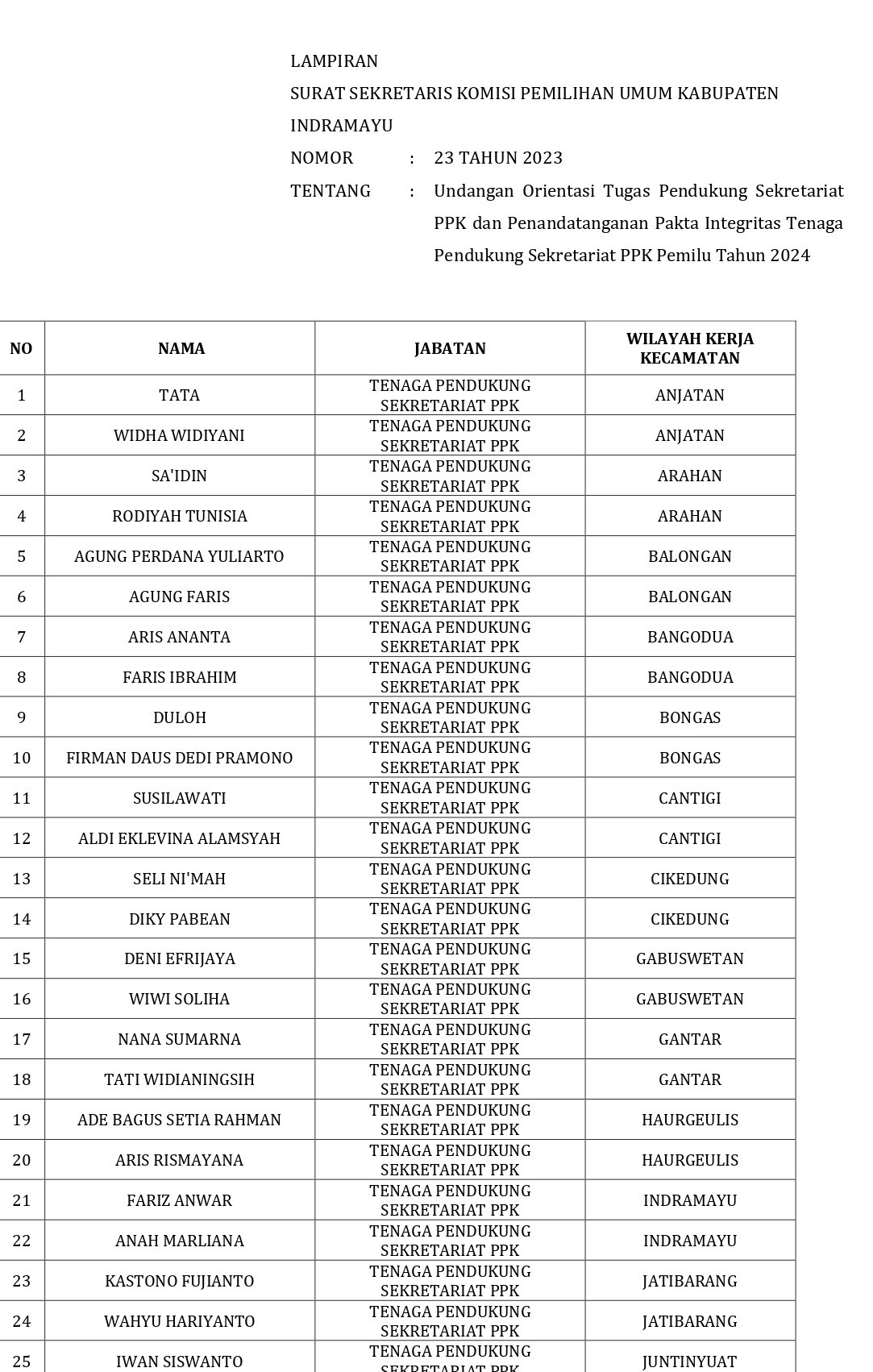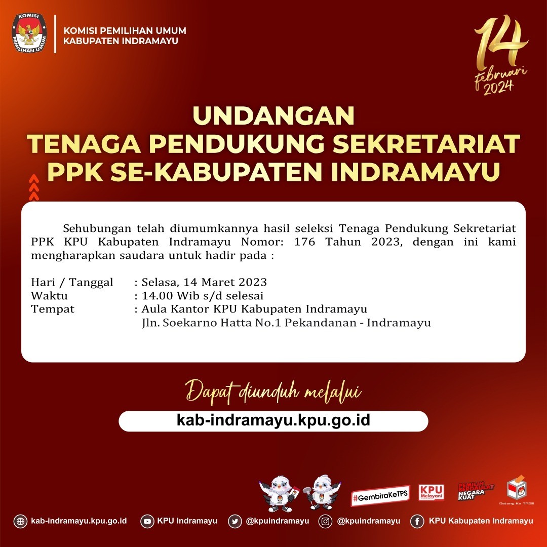 Undangan Penandatanganan Pakta Integritas dan Orientasi Tugas Tenaga Pendukung Sekretariat PPK Pemilu Tahun 2024